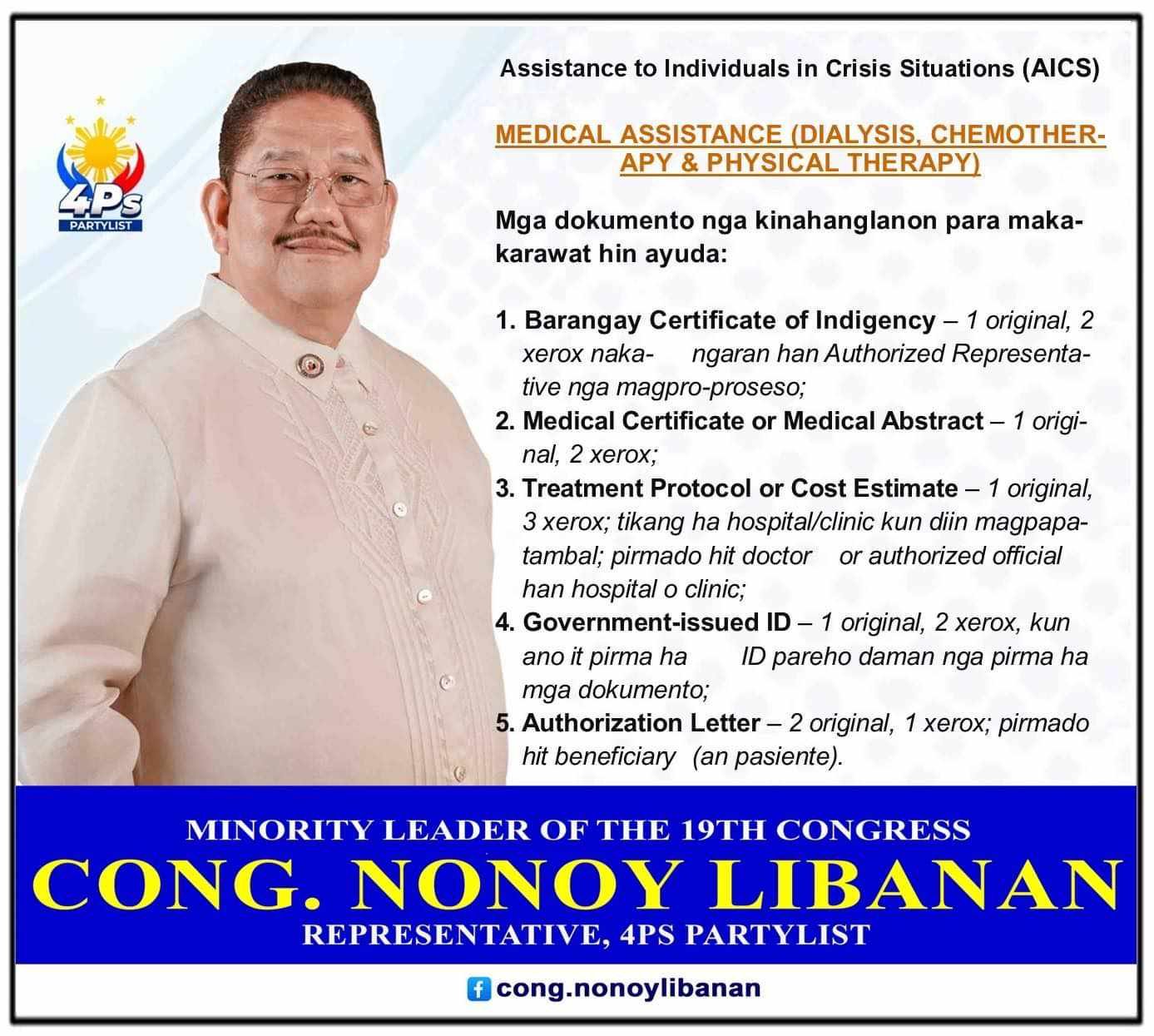 To apply for Medical Assistance (Dialysis, Chemotheraphy & Physical Therapy), applicants need to provide specific documents to ensure a smooth and efficient processing. Please prepare the following: